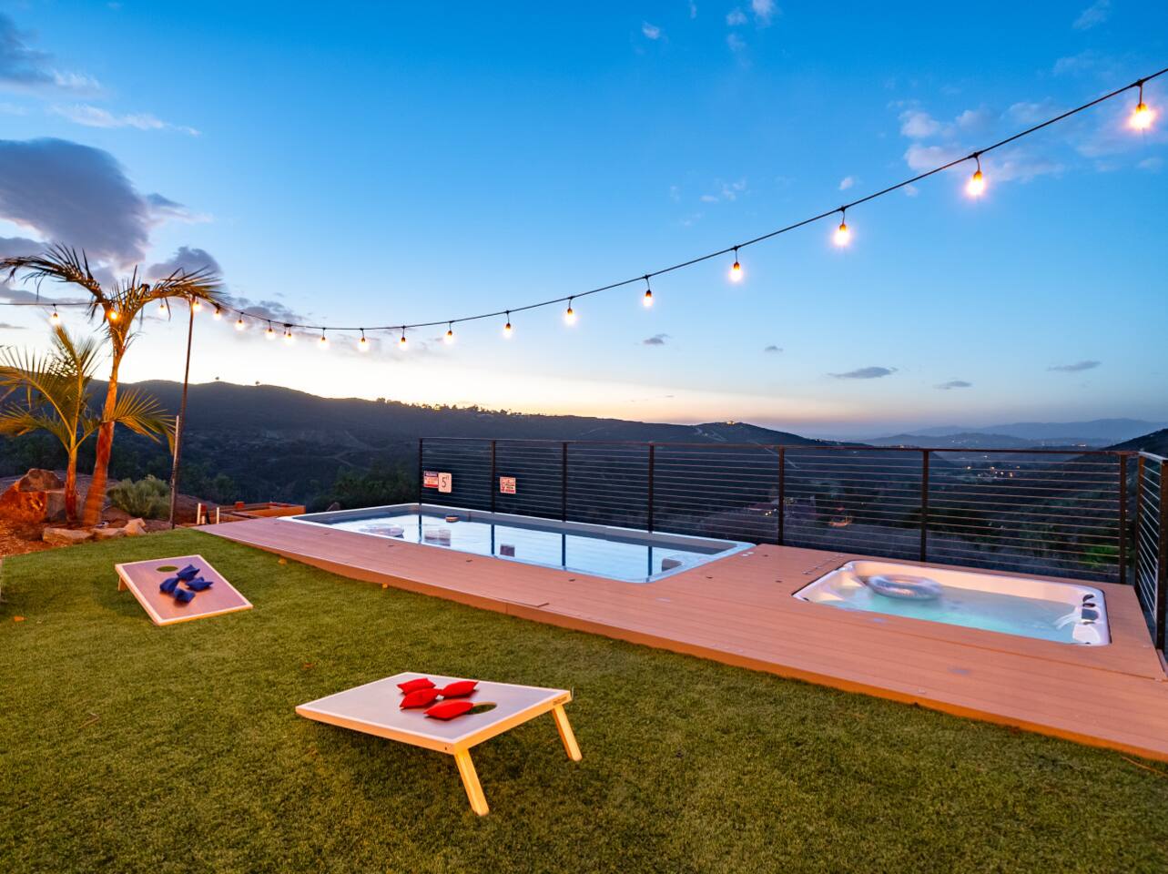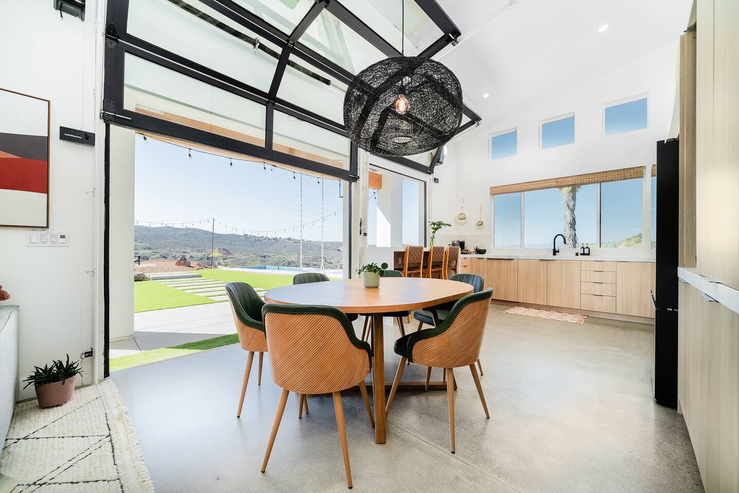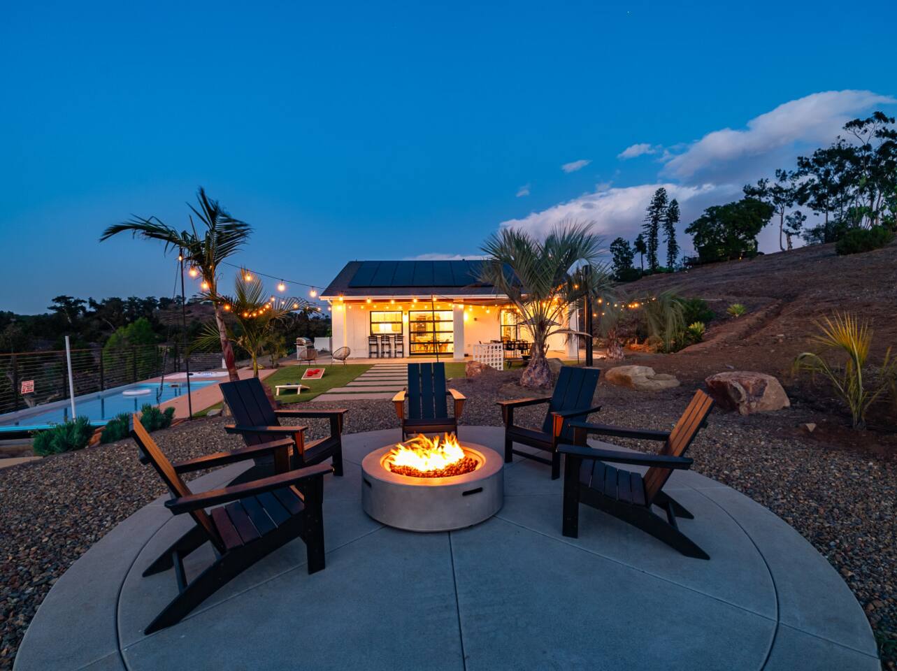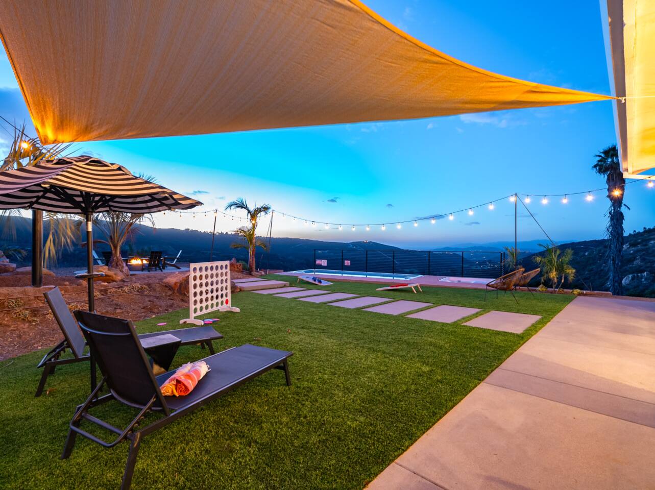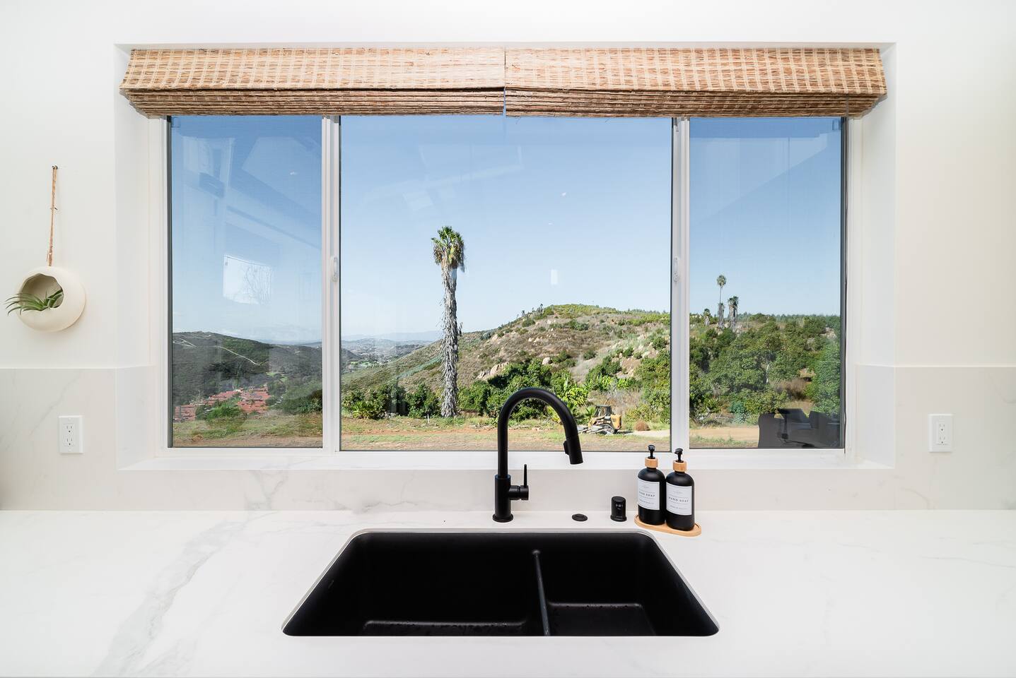 The Hideaway is where luxury meets nature, experience a truly unique retreat at our Vista property. Nestled away from the noise and stress of daily life, yet 15 minutes to amenities, this peaceful getaway is perfect for nature lovers and those in search of serenity. Escape the everyday and reconnect with the stunning beauty of the outdoors. It’s the ultimate “get away from it all” destination! *Can be booked with our 2 person unit on the same property for a total of 12 guests* (Inquire for details) **Featured on TV!** Vista Valley Hideaway caught the eye of real estate producer, Ty Hines, and our property was featured on SD Luxury Listings TV! Step inside and take in breathtaking panoramic views from the moment you arrive. The living room is a true showstopper, featuring a roll-up glass door that blurs the line between indoors and out—letting that perfect California sunshine and breeze flow right in. Outside, unwind on the covered patio, dive into the heated pool (kept at a comfy 78+-° during peak season at no extra charge, April–Oct, but can be heated during winter months for a small daily fee), or gather around the fire pit for starlit evenings and alfresco dining. Just 15 minutes from downtown, this pet-friendly oasis offers the perfect mix of relaxation, nature, and easy access to local fun. This open concept design allows people in the kitchen to connect with everybody in the dining area, living rooms, and even the outdoor spaces. Want to make a special meal for all of your guests? Enjoy all the amenities that this chef’s kitchen offers! Want to pass some appetizers out to the guests outside- no problem! The “pass through” servery kitchen window brings function and beauty to the space. You can choose to eat at the dining room table that seats 6, the servery window with bar stool seating that sits 6, and steps away you can take in the gorgeous views under the covered patio with an outdoor table that seats 8. This spacious vacation home offers three beautifully appointed bedrooms that all include 45” televisions. The master bedroom suite boasts a luxurious king-size bed, offering a regal night's sleep where you wake up to the beautiful surrounding mountain views! Take your freshly brewed cup of coffee right outside through the master bedrooms sliding glass doors and enjoy the outdoor furniture accompanying your bedroom suite. The en-suite master bathroom features a dual vanity, luxurious modern shower, and toilet room. The second bedroom features a comfortable queen-size bed, and the third bedroom is perfect for families with a full-size bunk bed that sleeps 4 children (or 2 adults) and a pullout twin trundle bed which sleeps 1 more, providing a cozy and efficient sleeping space. But the magic of this space extends beyond the bedrooms. Our living room and game room are versatile areas for relaxation and entertainment. Need extra sleeping options? No problem. The living room and game room both have pull-out queen-size sofa beds and we also have a full size air mattress. We can accommodate a total of 8 guests on the property comfortably. The game room, aka The Big Lebowski “Dude room”, features a pool table, Pac-Man machine, PlayStation 5, and board games; adding an extra layer of entertainment to your stay. And for the ultimate in relaxation, don't forget to unwind in the hot tub and pool, taking in the breathtaking surroundings. You'll love this private space! What are you waiting for? Come experience the perfect balance of nature and luxury at our Vista property today, where you can escape from it all and create memories to last a lifetime!