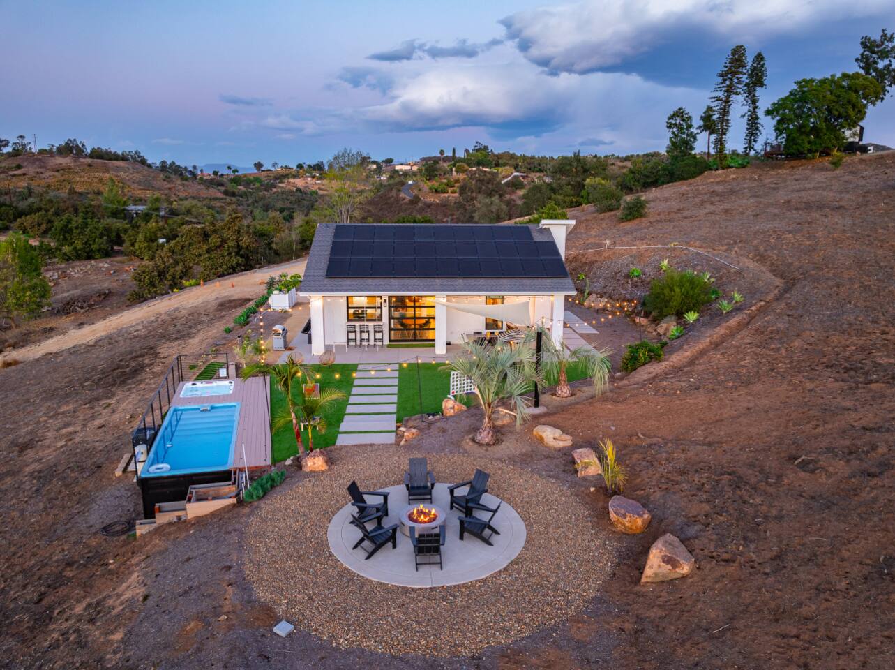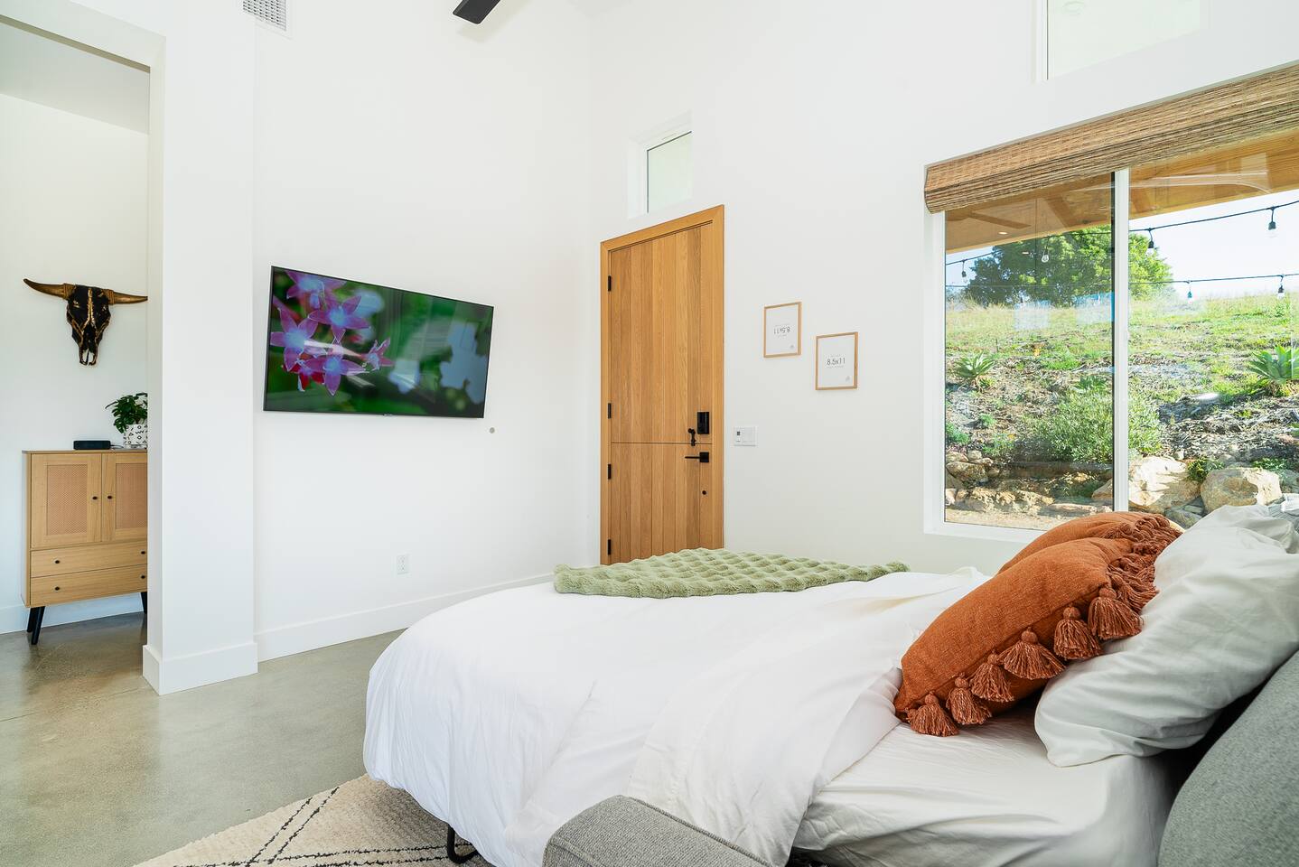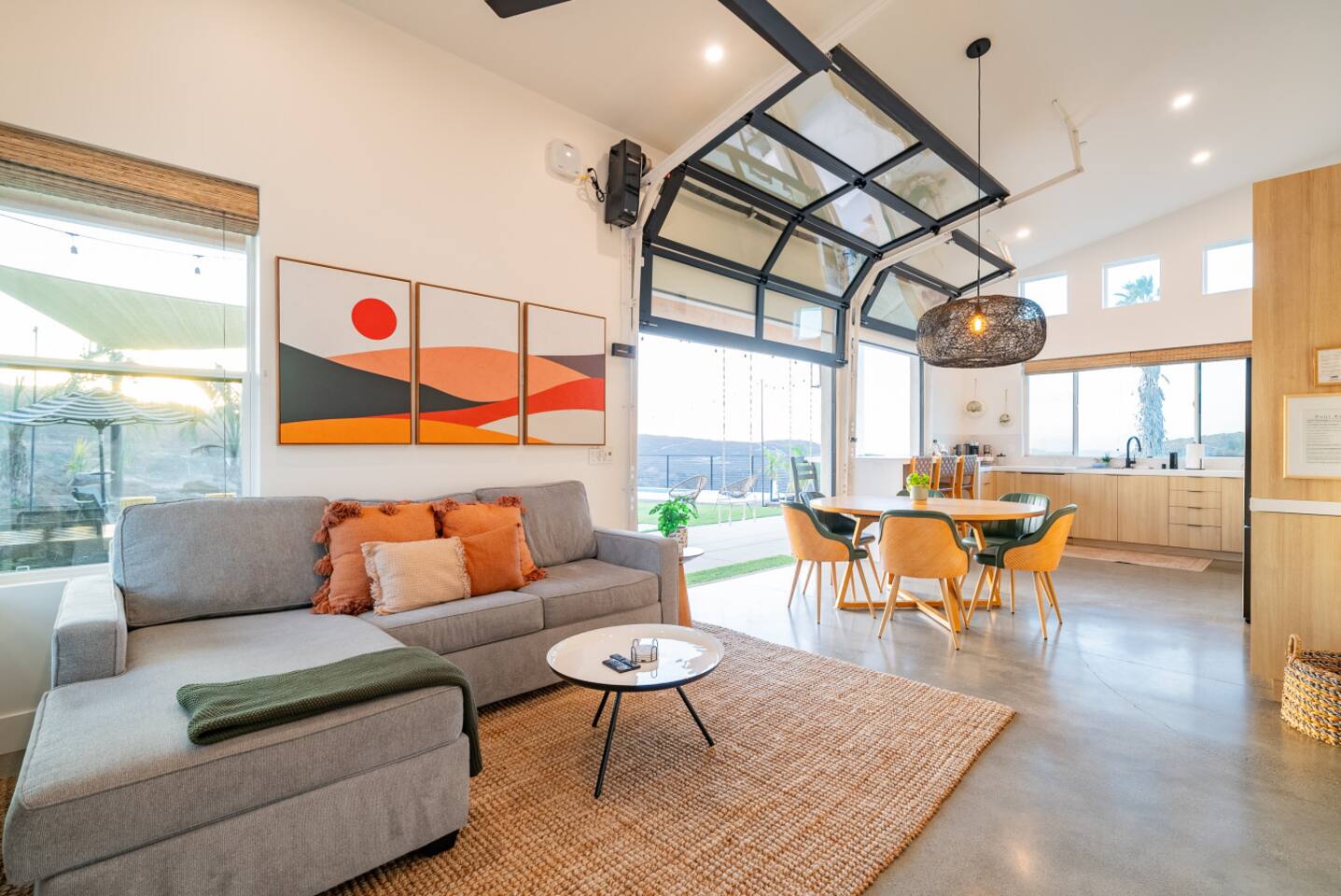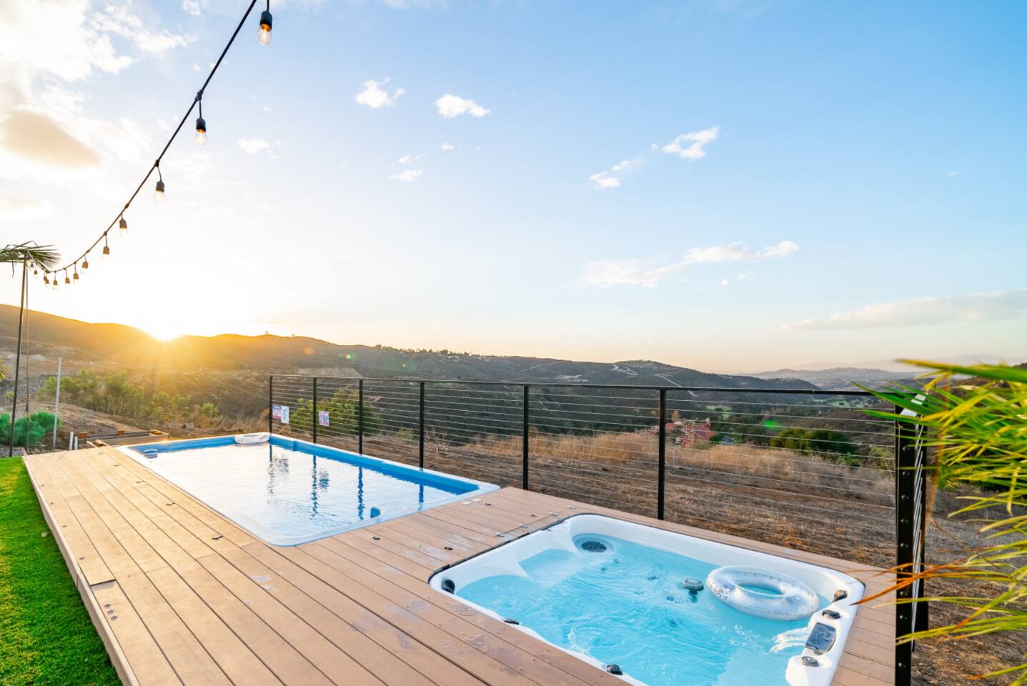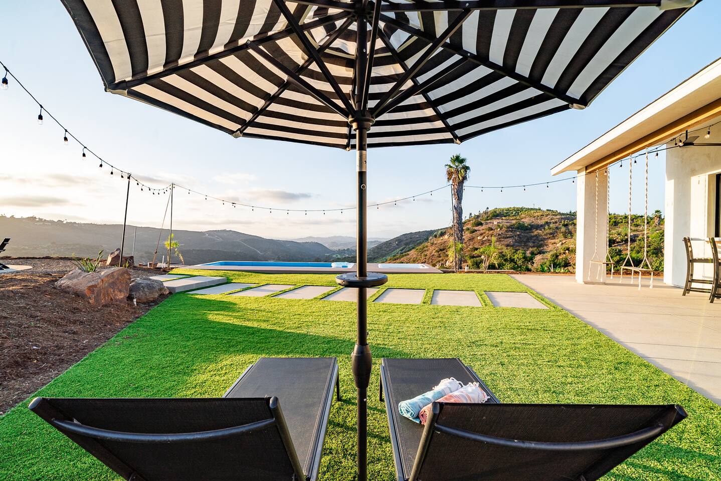 The Hideaway is where luxury meets nature, experience a truly unique retreat at our Vista property. Nestled away from the noise and stress of daily life, yet 15 minutes to amenities, this peaceful getaway is perfect for nature lovers and those in search of serenity. Escape the everyday and reconnect with the stunning beauty of the outdoors. It’s the ultimate “get away from it all” destination! *Can be booked with our 2 person unit on the same property for a total of 12 guests* (Inquire for details) **Featured on TV!** Vista Valley Hideaway caught the eye of real estate producer, Ty Hines, and our property was featured on SD Luxury Listings TV! Step inside and take in breathtaking panoramic views from the moment you arrive. The living room is a true showstopper, featuring a roll-up glass door that blurs the line between indoors and out—letting that perfect California sunshine and breeze flow right in. Outside, unwind on the covered patio, dive into the heated pool (kept at a comfy 78+-° during peak season at no extra charge, April–Oct, but can be heated during winter months for a small daily fee), or gather around the fire pit for starlit evenings and alfresco dining. Just 15 minutes from downtown, this pet-friendly oasis offers the perfect mix of relaxation, nature, and easy access to local fun. This open concept design allows people in the kitchen to connect with everybody in the dining area, living rooms, and even the outdoor spaces. Want to make a special meal for all of your guests? Enjoy all the amenities that this chef’s kitchen offers! Want to pass some appetizers out to the guests outside- no problem! The “pass through” servery kitchen window brings function and beauty to the space. You can choose to eat at the dining room table that seats 6, the servery window with bar stool seating that sits 6, and steps away you can take in the gorgeous views under the covered patio with an outdoor table that seats 8. This spacious vacation home offers three beautifully appointed bedrooms that all include 45” televisions. The master bedroom suite boasts a luxurious king-size bed, offering a regal night's sleep where you wake up to the beautiful surrounding mountain views! Take your freshly brewed cup of coffee right outside through the master bedrooms sliding glass doors and enjoy the outdoor furniture accompanying your bedroom suite. The en-suite master bathroom features a dual vanity, luxurious modern shower, and toilet room. The second bedroom features a comfortable queen-size bed, and the third bedroom is perfect for families with a full-size bunk bed that sleeps 4 children (or 2 adults) and a pullout twin trundle bed which sleeps 1 more, providing a cozy and efficient sleeping space. But the magic of this space extends beyond the bedrooms. Our living room and game room are versatile areas for relaxation and entertainment. Need extra sleeping options? No problem. The living room and game room both have pull-out queen-size sofa beds and we also have a full size air mattress. We can accommodate a total of 8 guests on the property comfortably. The game room, aka The Big Lebowski “Dude room”, features a pool table, Pac-Man machine, PlayStation 5, and board games; adding an extra layer of entertainment to your stay. And for the ultimate in relaxation, don't forget to unwind in the hot tub and pool, taking in the breathtaking surroundings. You'll love this private space! What are you waiting for? Come experience the perfect balance of nature and luxury at our Vista property today, where you can escape from it all and create memories to last a lifetime!