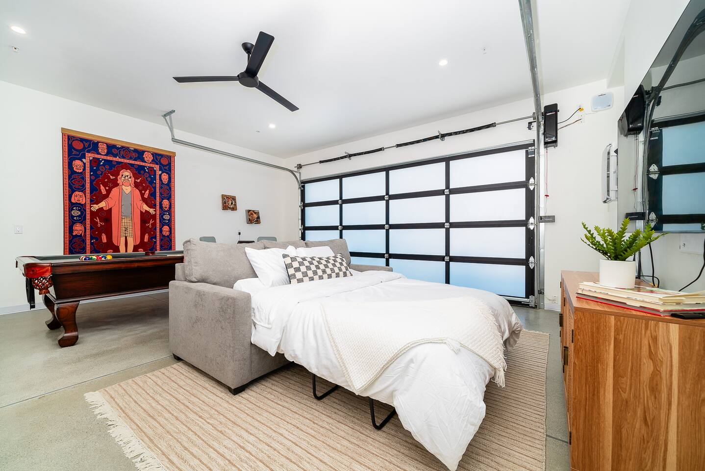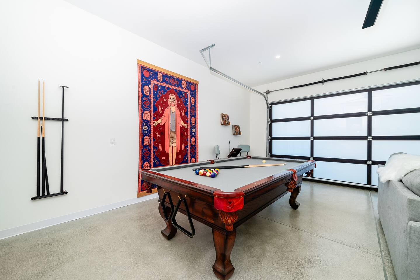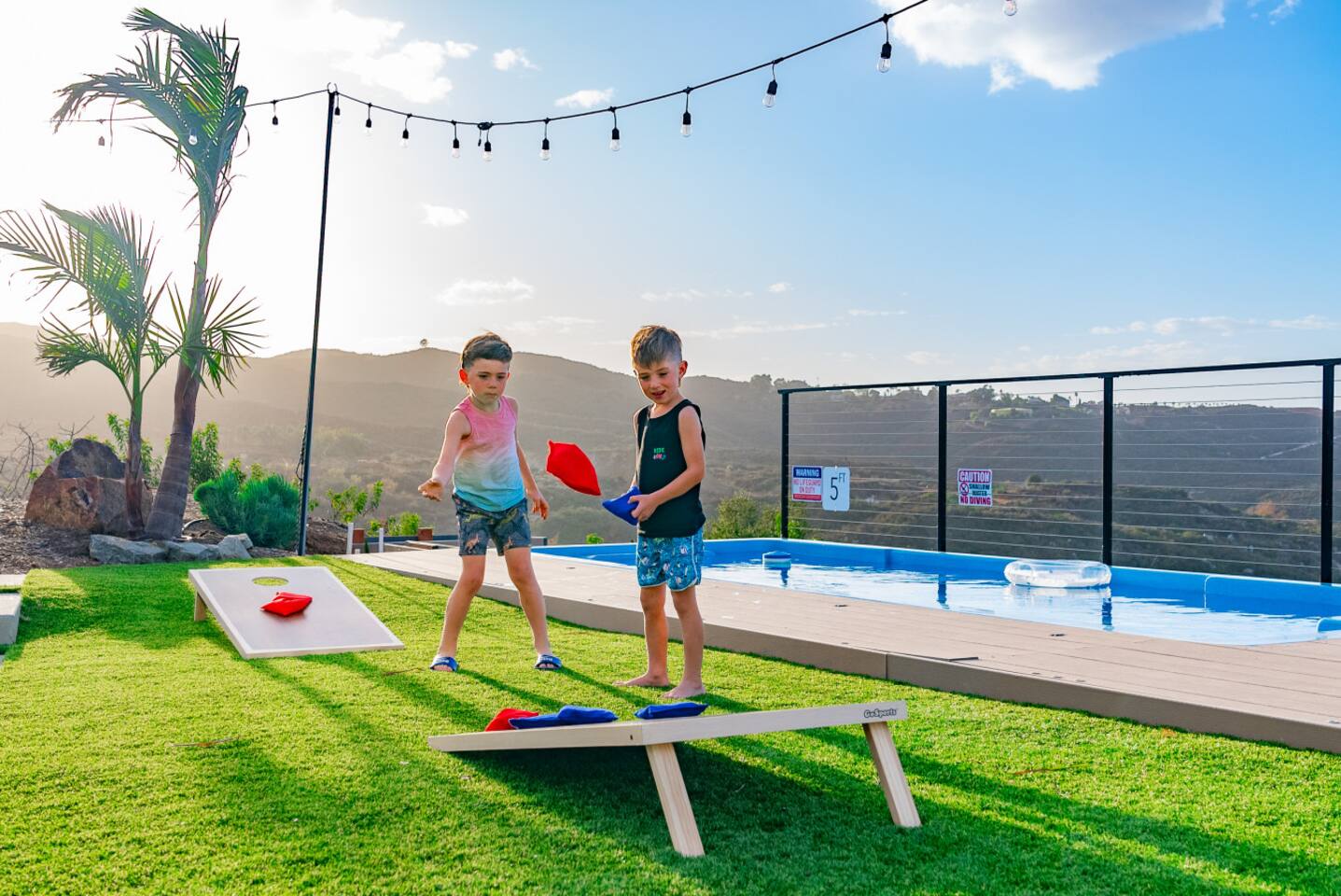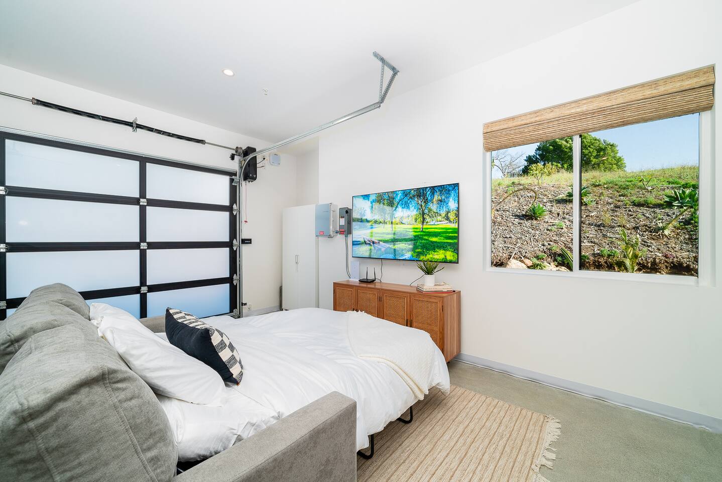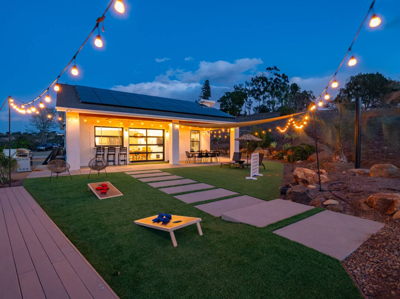 The Hideaway is where luxury meets nature, experience a truly unique retreat at our Vista property. Nestled away from the noise and stress of daily life, yet 15 minutes to amenities, this peaceful getaway is perfect for nature lovers and those in search of serenity. Escape the everyday and reconnect with the stunning beauty of the outdoors. It’s the ultimate “get away from it all” destination! *Can be booked with our 2 person unit on the same property for a total of 12 guests* (Inquire for details) **Featured on TV!** Vista Valley Hideaway caught the eye of real estate producer, Ty Hines, and our property was featured on SD Luxury Listings TV! Step inside and take in breathtaking panoramic views from the moment you arrive. The living room is a true showstopper, featuring a roll-up glass door that blurs the line between indoors and out—letting that perfect California sunshine and breeze flow right in. Outside, unwind on the covered patio, dive into the heated pool (kept at a comfy 78+-° during peak season at no extra charge, April–Oct, but can be heated during winter months for a small daily fee), or gather around the fire pit for starlit evenings and alfresco dining. Just 15 minutes from downtown, this pet-friendly oasis offers the perfect mix of relaxation, nature, and easy access to local fun. This open concept design allows people in the kitchen to connect with everybody in the dining area, living rooms, and even the outdoor spaces. Want to make a special meal for all of your guests? Enjoy all the amenities that this chef’s kitchen offers! Want to pass some appetizers out to the guests outside- no problem! The “pass through” servery kitchen window brings function and beauty to the space. You can choose to eat at the dining room table that seats 6, the servery window with bar stool seating that sits 6, and steps away you can take in the gorgeous views under the covered patio with an outdoor table that seats 8. This spacious vacation home offers three beautifully appointed bedrooms that all include 45” televisions. The master bedroom suite boasts a luxurious king-size bed, offering a regal night's sleep where you wake up to the beautiful surrounding mountain views! Take your freshly brewed cup of coffee right outside through the master bedrooms sliding glass doors and enjoy the outdoor furniture accompanying your bedroom suite. The en-suite master bathroom features a dual vanity, luxurious modern shower, and toilet room. The second bedroom features a comfortable queen-size bed, and the third bedroom is perfect for families with a full-size bunk bed that sleeps 4 children (or 2 adults) and a pullout twin trundle bed which sleeps 1 more, providing a cozy and efficient sleeping space. But the magic of this space extends beyond the bedrooms. Our living room and game room are versatile areas for relaxation and entertainment. Need extra sleeping options? No problem. The living room and game room both have pull-out queen-size sofa beds and we also have a full size air mattress. We can accommodate a total of 8 guests on the property comfortably. The game room, aka The Big Lebowski “Dude room”, features a pool table, Pac-Man machine, PlayStation 5, and board games; adding an extra layer of entertainment to your stay. And for the ultimate in relaxation, don't forget to unwind in the hot tub and pool, taking in the breathtaking surroundings. You'll love this private space! What are you waiting for? Come experience the perfect balance of nature and luxury at our Vista property today, where you can escape from it all and create memories to last a lifetime!