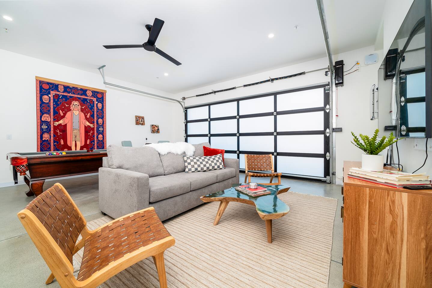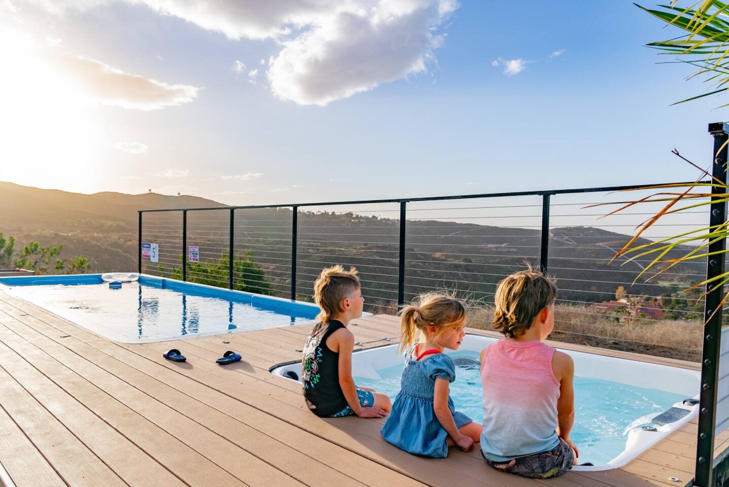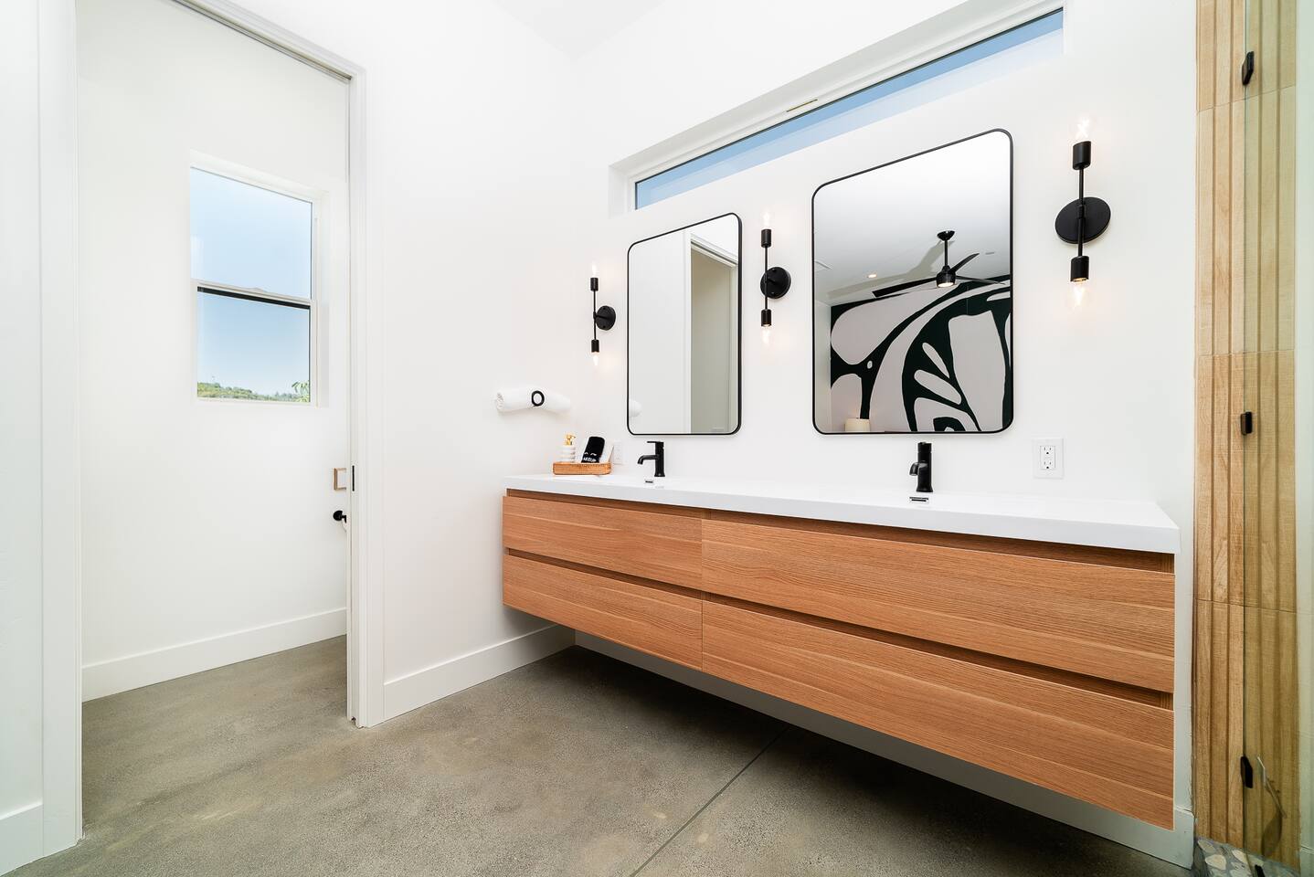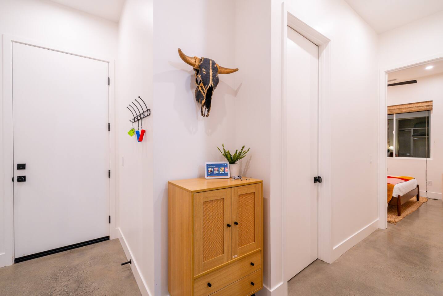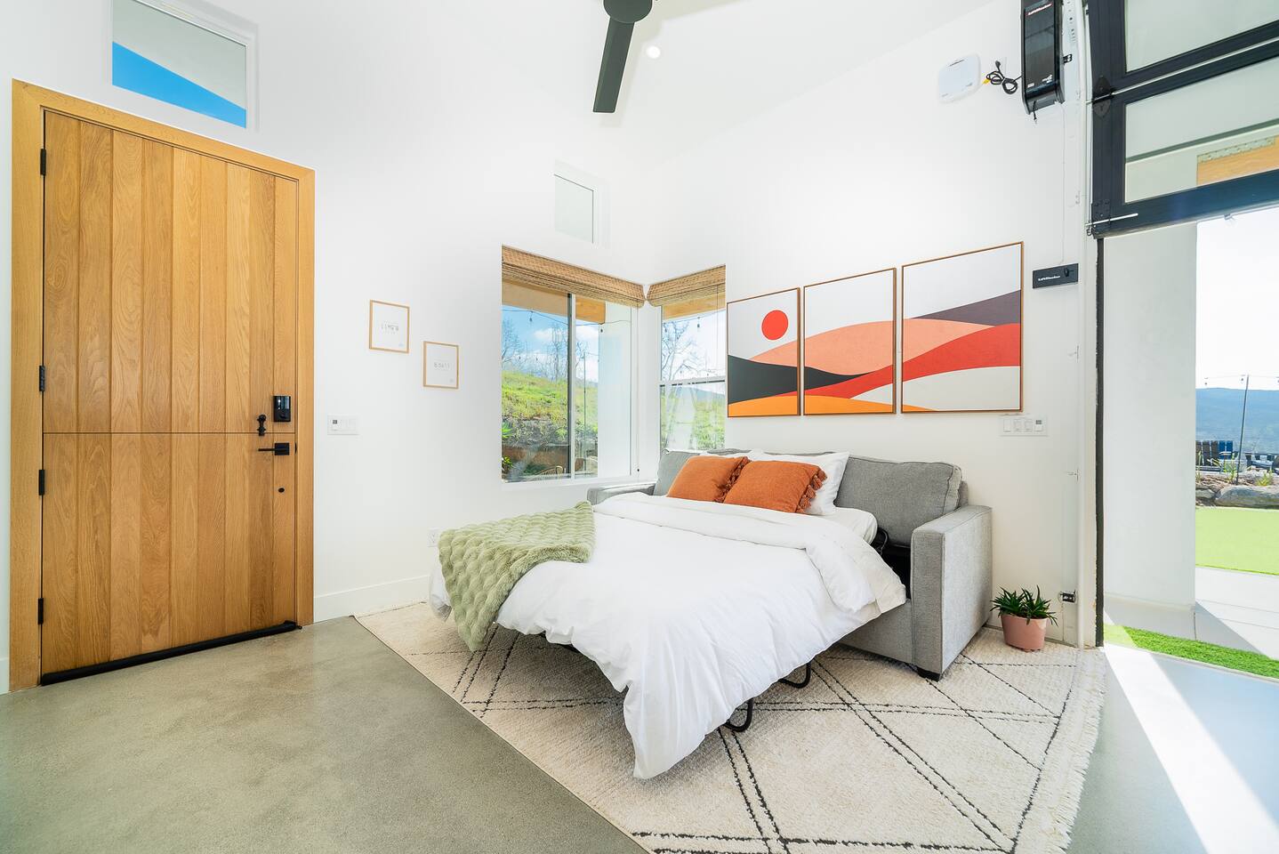 The Hideaway is where luxury meets nature, experience a truly unique retreat at our Vista property. Nestled away from the noise and stress of daily life, yet 15 minutes to amenities, this peaceful getaway is perfect for nature lovers and those in search of serenity. Escape the everyday and reconnect with the stunning beauty of the outdoors. It’s the ultimate “get away from it all” destination! *Can be booked with our 2 person unit on the same property for a total of 12 guests* (Inquire for details) **Featured on TV!** Vista Valley Hideaway caught the eye of real estate producer, Ty Hines, and our property was featured on SD Luxury Listings TV! Step inside and take in breathtaking panoramic views from the moment you arrive. The living room is a true showstopper, featuring a roll-up glass door that blurs the line between indoors and out—letting that perfect California sunshine and breeze flow right in. Outside, unwind on the covered patio, dive into the heated pool (kept at a comfy 78+-° during peak season at no extra charge, April–Oct, but can be heated during winter months for a small daily fee), or gather around the fire pit for starlit evenings and alfresco dining. Just 15 minutes from downtown, this pet-friendly oasis offers the perfect mix of relaxation, nature, and easy access to local fun. This open concept design allows people in the kitchen to connect with everybody in the dining area, living rooms, and even the outdoor spaces. Want to make a special meal for all of your guests? Enjoy all the amenities that this chef’s kitchen offers! Want to pass some appetizers out to the guests outside- no problem! The “pass through” servery kitchen window brings function and beauty to the space. You can choose to eat at the dining room table that seats 6, the servery window with bar stool seating that sits 6, and steps away you can take in the gorgeous views under the covered patio with an outdoor table that seats 8. This spacious vacation home offers three beautifully appointed bedrooms that all include 45” televisions. The master bedroom suite boasts a luxurious king-size bed, offering a regal night's sleep where you wake up to the beautiful surrounding mountain views! Take your freshly brewed cup of coffee right outside through the master bedrooms sliding glass doors and enjoy the outdoor furniture accompanying your bedroom suite. The en-suite master bathroom features a dual vanity, luxurious modern shower, and toilet room. The second bedroom features a comfortable queen-size bed, and the third bedroom is perfect for families with a full-size bunk bed that sleeps 4 children (or 2 adults) and a pullout twin trundle bed which sleeps 1 more, providing a cozy and efficient sleeping space. But the magic of this space extends beyond the bedrooms. Our living room and game room are versatile areas for relaxation and entertainment. Need extra sleeping options? No problem. The living room and game room both have pull-out queen-size sofa beds and we also have a full size air mattress. We can accommodate a total of 8 guests on the property comfortably. The game room, aka The Big Lebowski “Dude room”, features a pool table, Pac-Man machine, PlayStation 5, and board games; adding an extra layer of entertainment to your stay. And for the ultimate in relaxation, don't forget to unwind in the hot tub and pool, taking in the breathtaking surroundings. You'll love this private space! What are you waiting for? Come experience the perfect balance of nature and luxury at our Vista property today, where you can escape from it all and create memories to last a lifetime!