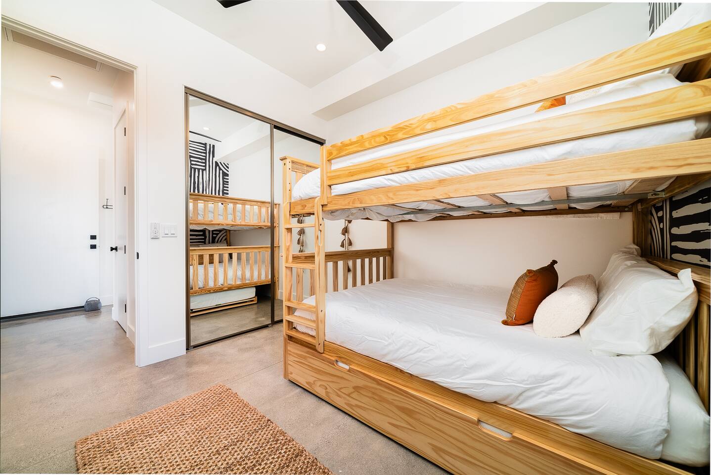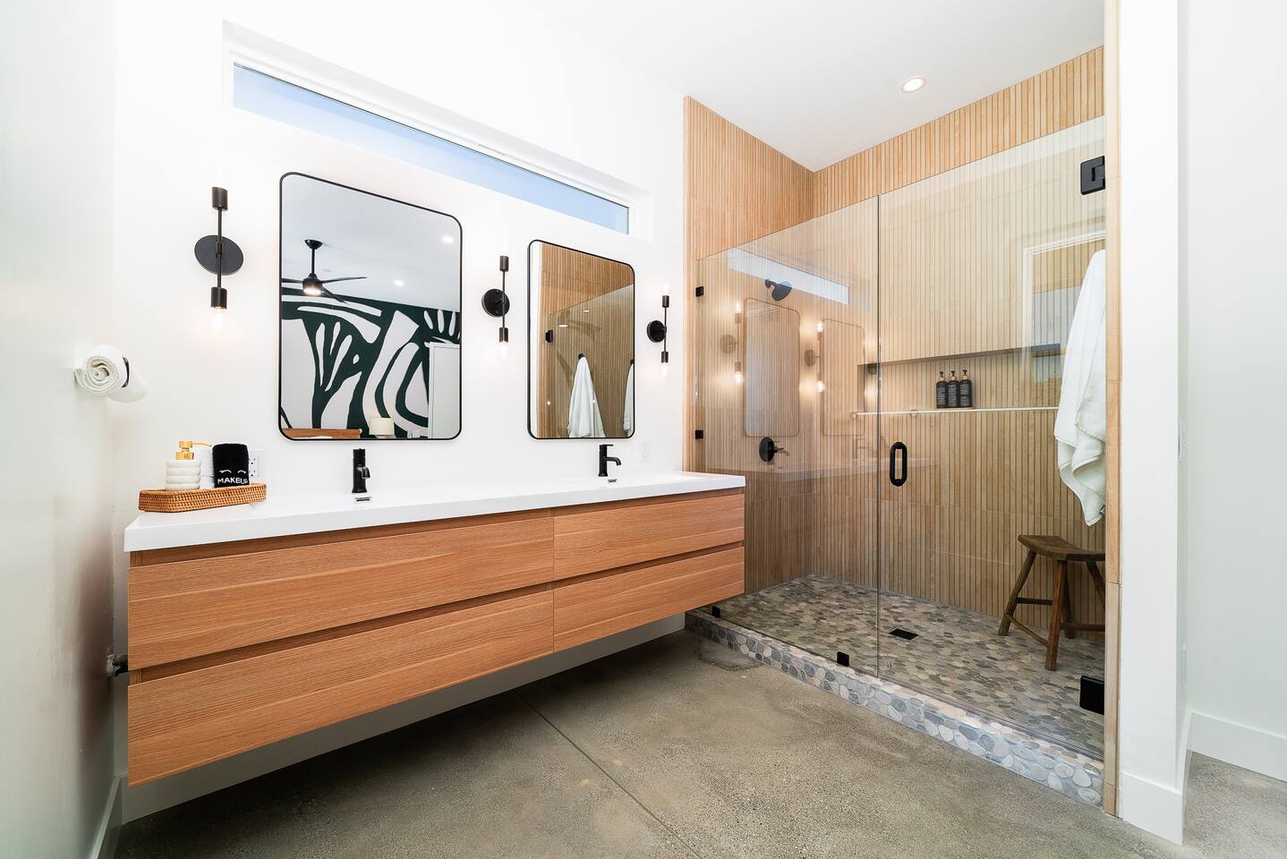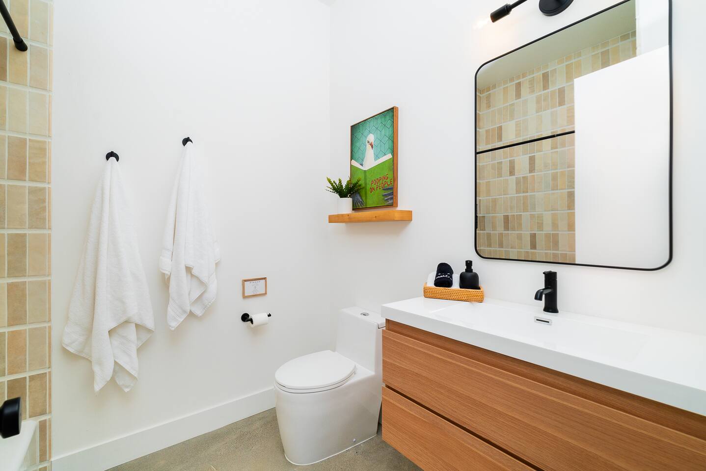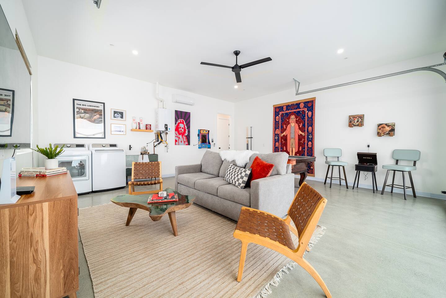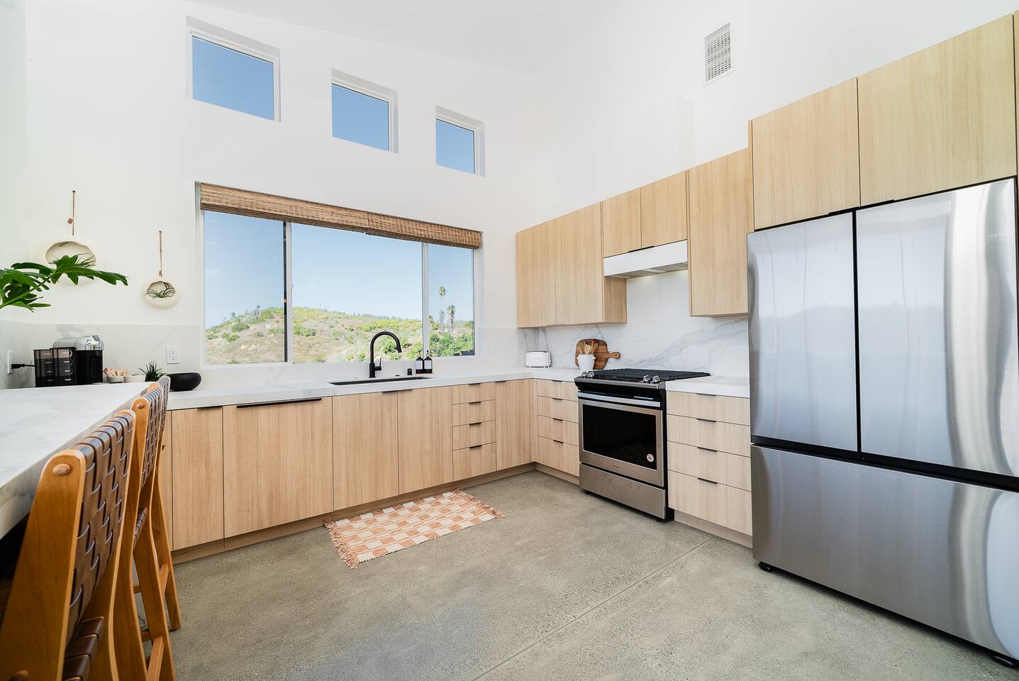 The Hideaway is where luxury meets nature, experience a truly unique retreat at our Vista property. Nestled away from the noise and stress of daily life, yet 15 minutes to amenities, this peaceful getaway is perfect for nature lovers and those in search of serenity. Escape the everyday and reconnect with the stunning beauty of the outdoors. It’s the ultimate “get away from it all” destination! *Can be booked with our 2 person unit on the same property for a total of 12 guests* (Inquire for details) **Featured on TV!** Vista Valley Hideaway caught the eye of real estate producer, Ty Hines, and our property was featured on SD Luxury Listings TV! Step inside and take in breathtaking panoramic views from the moment you arrive. The living room is a true showstopper, featuring a roll-up glass door that blurs the line between indoors and out—letting that perfect California sunshine and breeze flow right in. Outside, unwind on the covered patio, dive into the heated pool (kept at a comfy 78+-° during peak season at no extra charge, April–Oct, but can be heated during winter months for a small daily fee), or gather around the fire pit for starlit evenings and alfresco dining. Just 15 minutes from downtown, this pet-friendly oasis offers the perfect mix of relaxation, nature, and easy access to local fun. This open concept design allows people in the kitchen to connect with everybody in the dining area, living rooms, and even the outdoor spaces. Want to make a special meal for all of your guests? Enjoy all the amenities that this chef’s kitchen offers! Want to pass some appetizers out to the guests outside- no problem! The “pass through” servery kitchen window brings function and beauty to the space. You can choose to eat at the dining room table that seats 6, the servery window with bar stool seating that sits 6, and steps away you can take in the gorgeous views under the covered patio with an outdoor table that seats 8. This spacious vacation home offers three beautifully appointed bedrooms that all include 45” televisions. The master bedroom suite boasts a luxurious king-size bed, offering a regal night's sleep where you wake up to the beautiful surrounding mountain views! Take your freshly brewed cup of coffee right outside through the master bedrooms sliding glass doors and enjoy the outdoor furniture accompanying your bedroom suite. The en-suite master bathroom features a dual vanity, luxurious modern shower, and toilet room. The second bedroom features a comfortable queen-size bed, and the third bedroom is perfect for families with a full-size bunk bed that sleeps 4 children (or 2 adults) and a pullout twin trundle bed which sleeps 1 more, providing a cozy and efficient sleeping space. But the magic of this space extends beyond the bedrooms. Our living room and game room are versatile areas for relaxation and entertainment. Need extra sleeping options? No problem. The living room and game room both have pull-out queen-size sofa beds and we also have a full size air mattress. We can accommodate a total of 8 guests on the property comfortably. The game room, aka The Big Lebowski “Dude room”, features a pool table, Pac-Man machine, PlayStation 5, and board games; adding an extra layer of entertainment to your stay. And for the ultimate in relaxation, don't forget to unwind in the hot tub and pool, taking in the breathtaking surroundings. You'll love this private space! What are you waiting for? Come experience the perfect balance of nature and luxury at our Vista property today, where you can escape from it all and create memories to last a lifetime!
